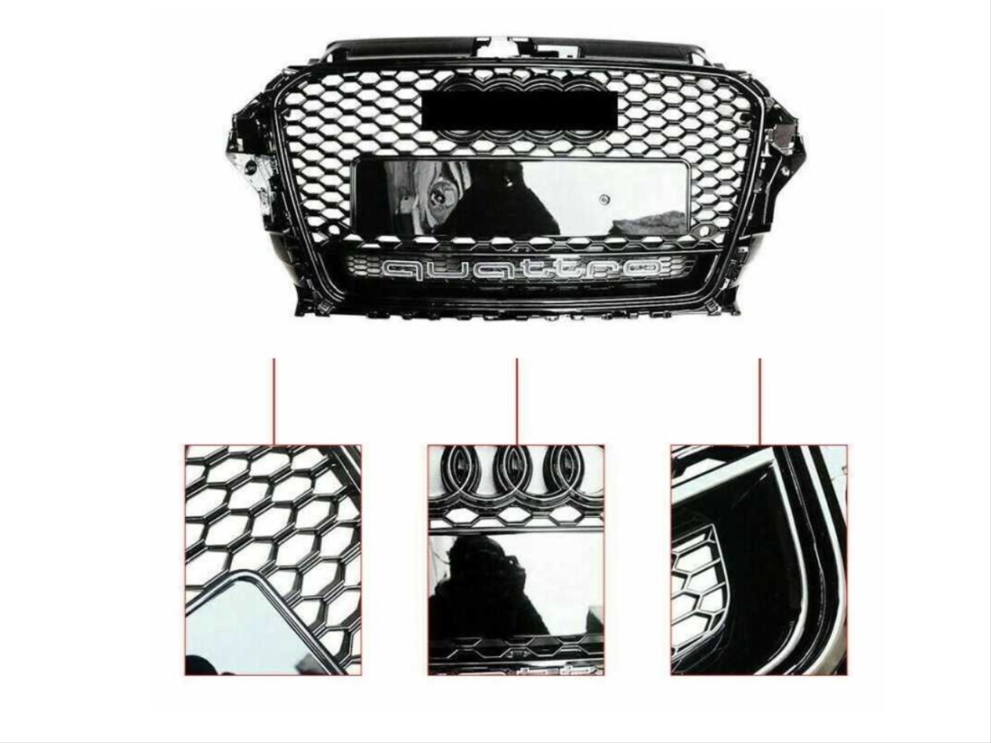 - Audi A3 Panjur RS3 Siyah araca uyumlu tasarımıyla bütünlüklü görünüm sağlar