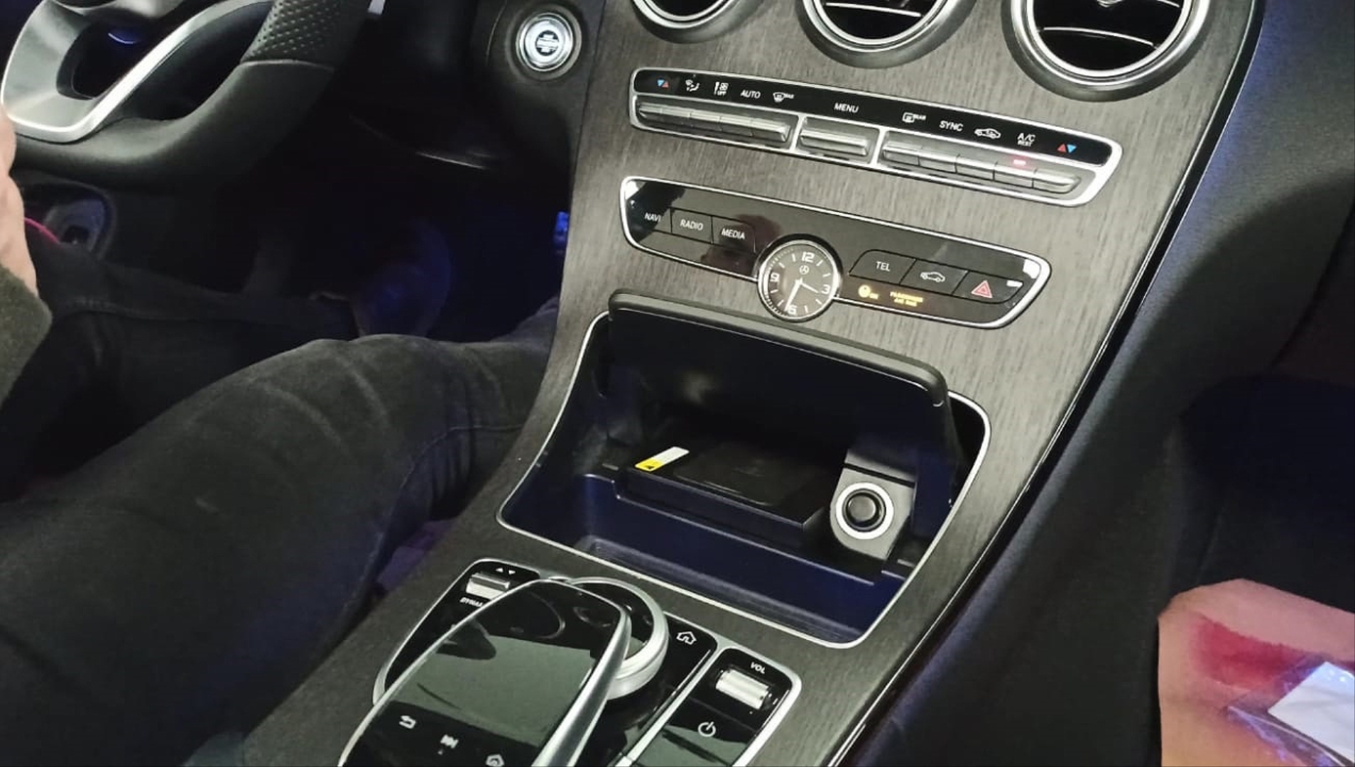 - Mercedes W205 C Serisi Kablosuz SARJ Standi araca uyumlu tasarımıyla bütünlüklü görünüm sağlar