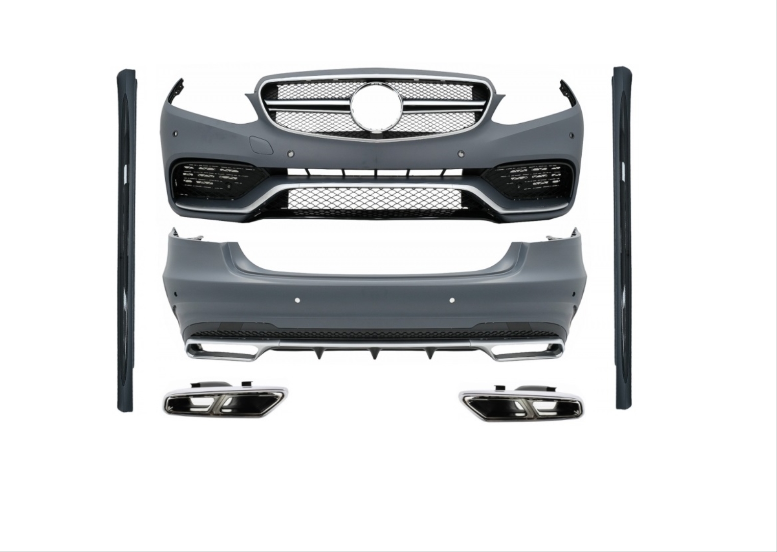 - Mercedes W212 E63 BODY Kit (Ön Tampon-difüzör-egzoz-marspiyel) araca uyumlu tasarımıyla bütünlüklü görünüm sağlar
