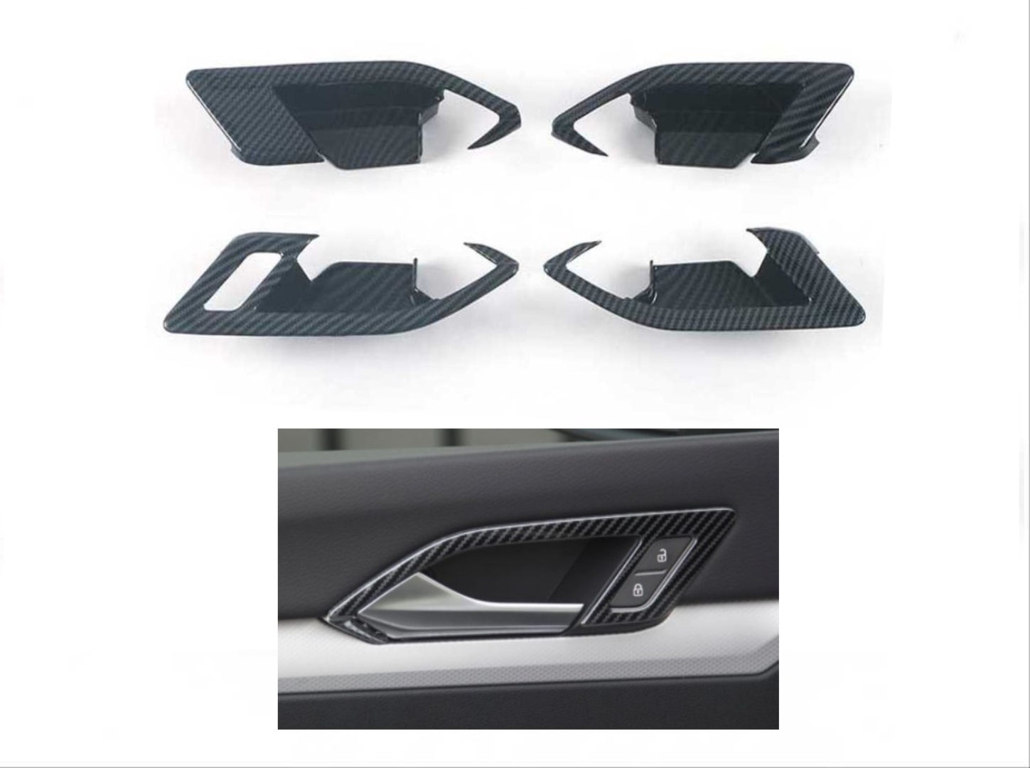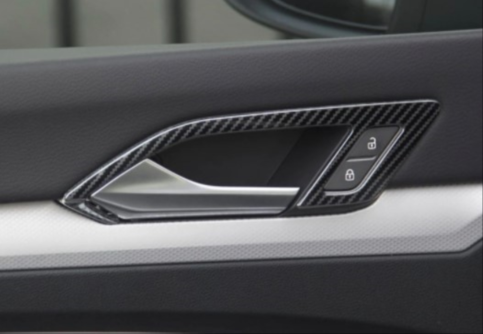 - Volkswagen GOLF 8 İc Kapi ACMA KOLU Kaplama – Karbon araca uyumlu tasarımıyla bütünlüklü görünüm sağlar